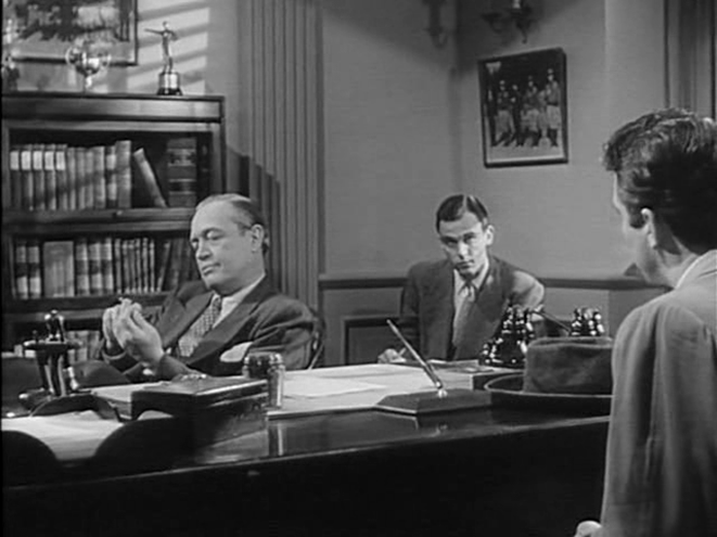 Cette réflexion sur la violence va curieusement amener une réflexion sur la peine de mort. C’est sans doute là quelque chose de surprenant et qui va rapprocher encore un peu plus ce film de celui de Fritz Lang, You only live once, bien que la mise en scène d’Anthony Mann soit beaucoup moins militante. Radak condamne à mort Steve au prétexte qu’il est indirectement responsable de l’exécution de son frère. Il va lui offrir une cigarette, un dernier repas. Cette manière de présenter les choses fait apparaître par contraste le passage du jeune frère sur la chaise électrique tout autant arbitraire et injuste que la condamnation à mort de Steve. Dans les deux cas les règles qui régissent la société des honnêtes gens et celles qui régissent le milieu sont de même nature.