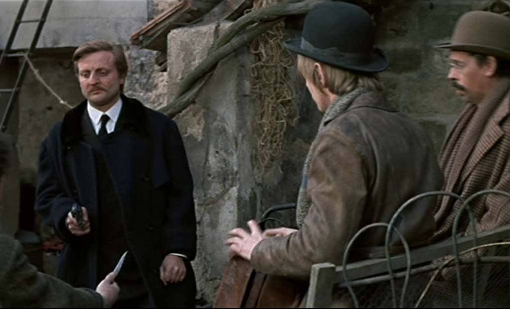 L’interprétation est plutôt cossue. Bruno Cremer incarne Bonnot. Ce qui est un peu curieux, parce que Bonnot faisait à peine un mètre cinquante-neuf. Et effet, les pauvres de ce temps là étaient plutôt petits de taille, alors que Bruno Cremer était un solide gaillard qui dépassait les un mètre quatre-vingts. Bonnot avait l’air bien plus doux que Cremer ! Un visage d’ange. Cependant, Bruno Cremer était un excellent acteur, et il le prouve encore ici. Jacques Brel est Callemin, dit Raymond-la science. C’était à l’époque une personnalité très appréciée, il venait de s’extraire du monde de la chanson où il avait triomphé, et cherchait sa voie au cinéma où, à mon sens, il n’a pas très bien réussi. Il en fait un peu trop dans l’ironie. On ne peut pas dire qu’il plombe le film, mais enfin, il n’apporte pas grand-chose. Annie Girardot incarne Marie la belge, plutôt discrètement, son rôle est d’ailleurs assez étroit. A cette époque elle était vraiment une grande vedette. Jean-Pierre Kalfon est un peu trop nonchalant dans le rôle de Garnier. Je trouve plus remarquables Armand Mestral dans le rôle de Jouin, et aussi Dominique Collignon-Maurel dans celui de Soudy.