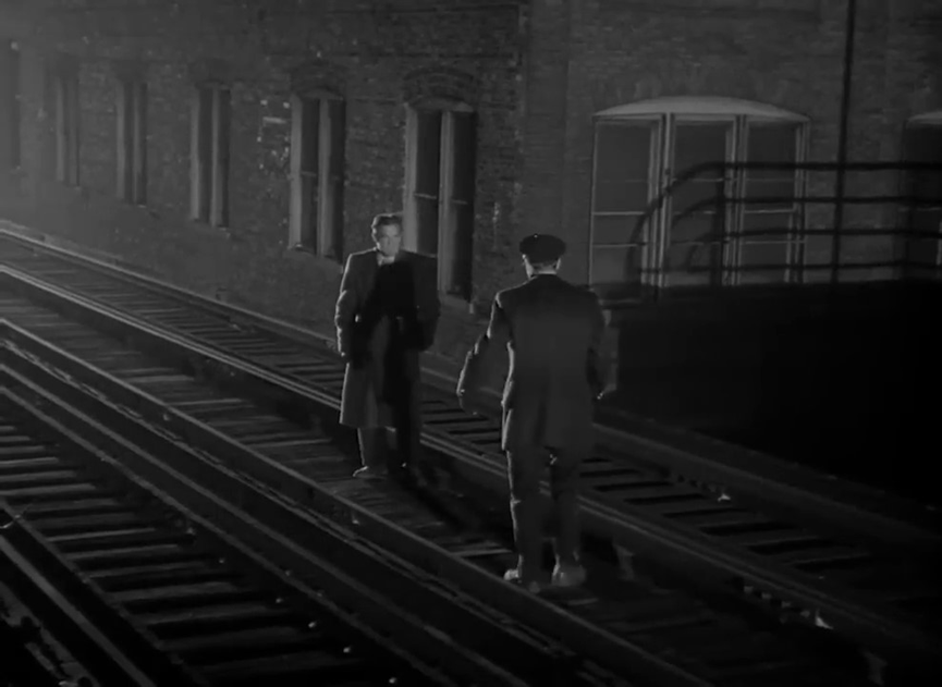 Parmi les scènes remarquables, il y a à l’intérieur de la séquence de la poursuite, Stewart qui se retrouve entre deux trains qui foncent à vive allure, il manque de se faire écraser. En général les scènes d’action sont solides, bien rythmées. L’inspection de l’immeuble utilise les longs couloirs déserts, car la nuit ces immeubles de bureaux sont complètement vides. C’est une figure qu’on trouve souvent dans les films noirs, notamment dans The Big Clock, le film de John Farrow[2], comme si on devait s’interroger sur cet abandon qui facilite le crime. Les scènes plus intimistes sont moins prenantes, trop souvent tournées en gros plan pour mieux saisir les baisers des amants. On verra le couple John-Sylvia, puis Stewart-Lydia, puis enfin John-Kathy. La scène où on voit Stewart et Lydia faire l’amour, est assez osée pour l’époque, les grands studios n’auraient pas osé !